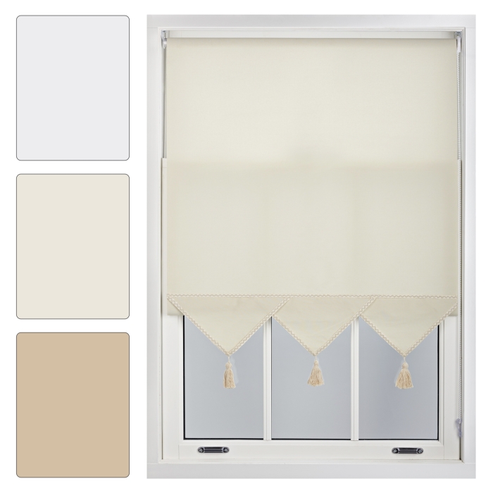 Roller Blinds With Triangle Edge & Tassels - Cream
