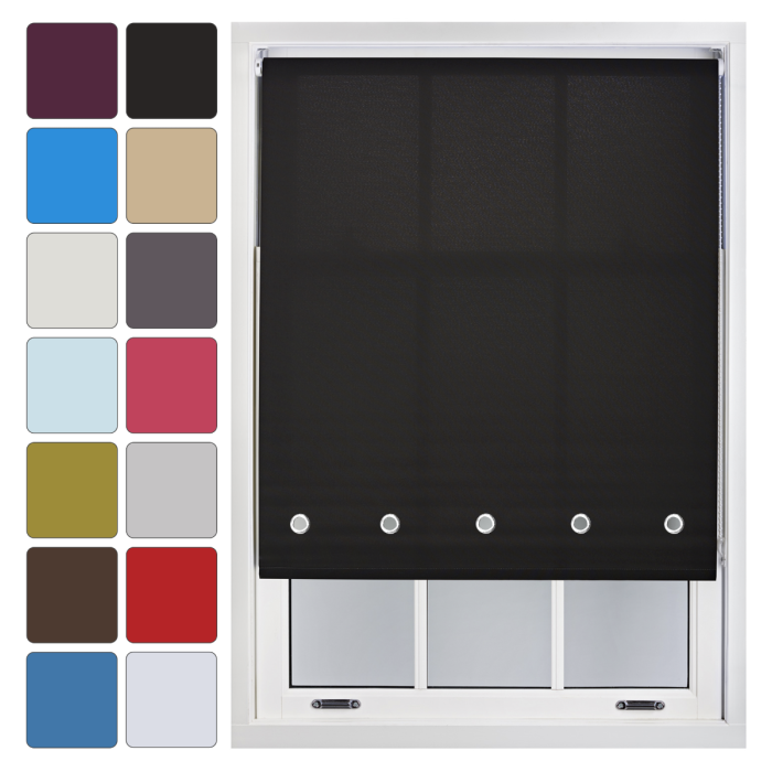 Eyelet Roller Blind Blinds Cream Black Red White Blue