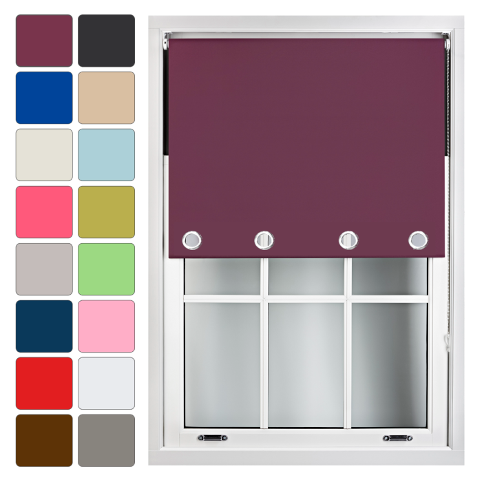 Blackout Roller Blinds with Large Round Chrome Eyelets