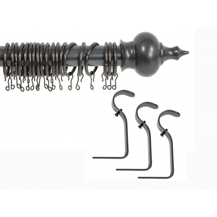 Pewter Metal Extendible Curtain Poles With Designer Shaped Finials Up To 300cm